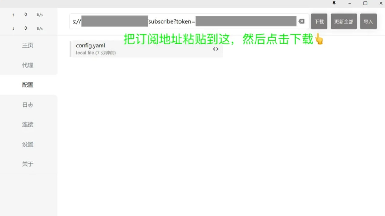 2. 配置页面,删除现有的所有配置,重新导入Clash订阅地址;